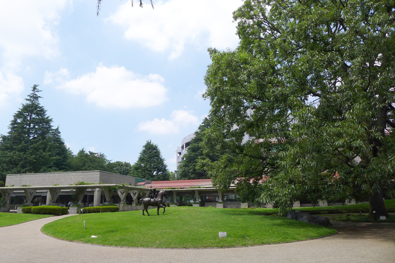 友人に誘われて世田谷美術館へ行った。真夏に訪れたのは初めてかもしれない。砧公園の広大な緑の芝生と林の中を、記憶を頼りに美術館を目指す。都会とは思えない静けさと開放的な空間。サングラスが欲しいほどの日射しに、蝉の声が暑い。木影が多い道を選んだのでかなり遠回りしたが、それでも約束の時間より早く着いてしまった。美術館とレストランを結ぶ長い渡り廊下の前のクヌギの木影で野外彫刻を見ながら、しばし涼をとる。ここへ来るたびに感心するのだが、見上げるほどの堂々としたクヌギの大木はそれ自身が立派な自然の作品で(この美術館の宝だ)、人の手が加わったどんな芸術作品もこの木には敵わない。比較の仕方が乱暴ではあるが、アーティストの創作活動も大変だなと思ってしまう。