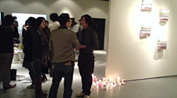「キャンドルナイト」自体がアートな催しですが、トウキョウミルキーウェイになると、これに輪をかけるアート三昧です。「ロハスにジャンルはない」というコンセプトのもとで、キャンドルの明かりでアートをみる展覧会、ライブコンサート、コンテンポラリーダンス、美術作品のライブ制作、パーティなど、コンテンポラリー芸術などがどっさり山盛りです(※写真4)。しか も、ほとんどのイベントが入場無料。これはお安い!しかも質が高い!