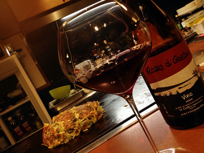 セレクトされたワインも思わずニヤリとしてしまうものばかり。キリッとミネラルの効いたドイツの辛口リースリング(おいしいキャベツにあいそう!)に、牛スジ肉にもぴったりなイタリアはラツィオ州の柔らかい赤ワイン。尼崎の地ソース・ワンダフルソースを塗して完成した頃には、トスカーナの銘酒ロッソ・ディ・モンタルチーノがグラスに注がれていました。