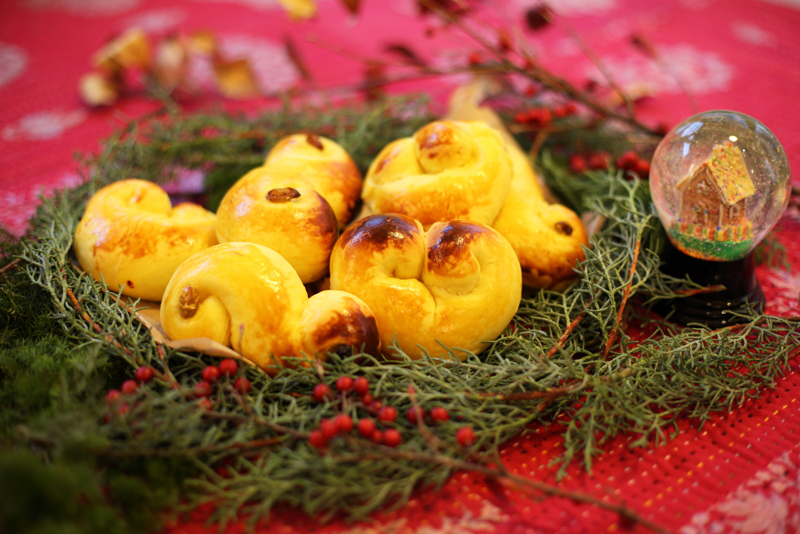 12月13日の聖ルチア祭に合わせて食べられるパンで、サフランを使います。