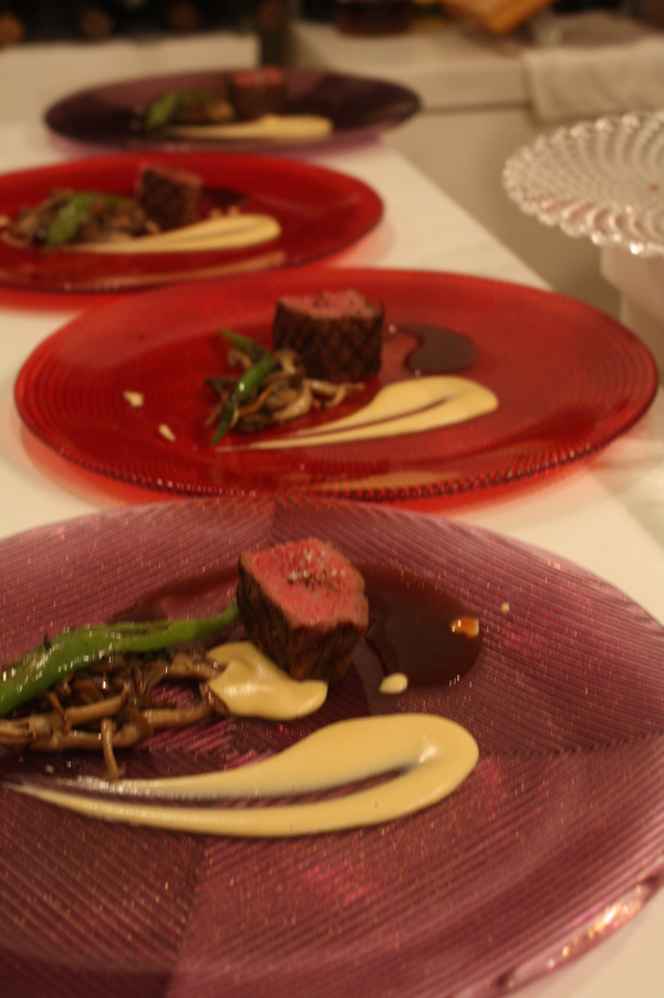 この日のメインは牛肉。インカのめざめピューレがアートのようにお皿を豪快に飾っています。