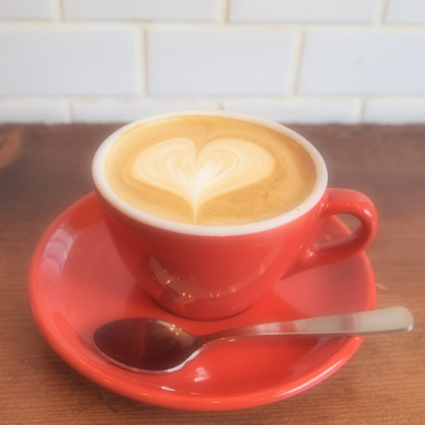 カウンターの中『La Marzocco』の真っ赤なエスプレッソマシーンがまぶしいです。業界最高峰といわれる機種を使用。コーヒーの豆は『珈琲工房HORIGUCHI(堀口珈琲)』のもの。コクと甘みのあるブレンド、レギュラー ドリップコーヒー300円、エスプレッソ ショート 300円、ダブル 380円。コーヒーアートが得意なスタッフがいます。♡やリーフ、♡の中にチューリップ、などのレパートリーがあります、リクエストすべし。