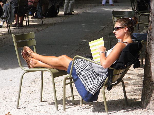| 流行のショートパンツと革紐サンダルを身に付けたおしゃれなパリジェンヌたち(セーヌ河岸にて) |