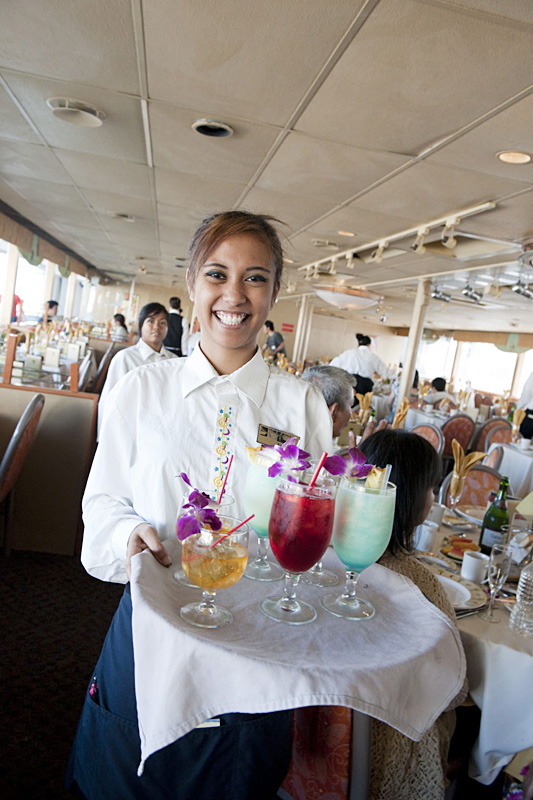 ハワイで一番大きな1,500人乗りのクルーズ船。食事とショーがカジュアルに楽しめる「スリースター・サンセットディナー&ショー」は$129(3歳から11歳以下の子供$77.50)。他には、おしゃれをして楽しみたい「ファイブスター・サンセットダイニング&ジャズ」$175(子供料金の設定なし)など。昼間のクルーズでは「ホエールウォッチング」$43(子供$26、クルーズ時刻12:00~14:30)もある。