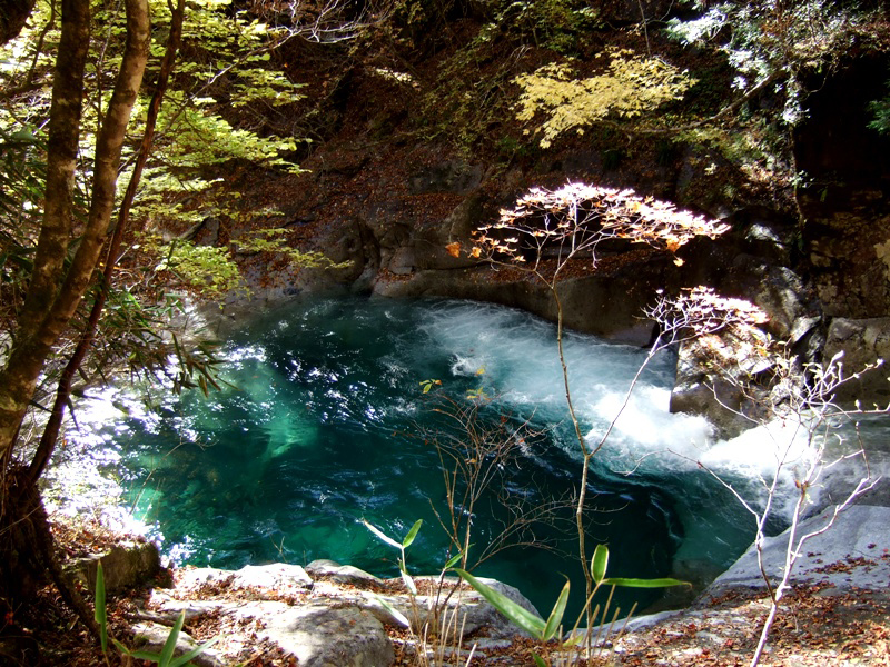 ◇川淵の石や岩には上がらないでください。岩は苔や水で滑りやすくなっています。淵に転落すると水流で岩下に押し込まれて浮上できません。