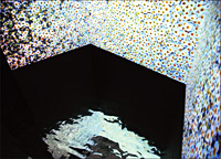 全国から集まった16組の作家による熱いアートバトルが行われました。(アワードのシステムについて詳しくはこちら) 通常の審査展とはことなり、会期前半の4日間の会期中に作家がそれぞれのスペースを作り上げ、5日目の8月23日(土)に審査結果発表される公開制作の審査展です。公開制作期間は、普段見られない作家の制作の模様や苦悩が見られ、その過程を楽しみに毎日訪れる来場者も。また、作家同士でもお互いの制作手法の違いを感じお互い それぞれの作家に与えられる縦横高さ6mの立方体という3Dのスペース。必然的にインスタレーション作品が目を引きます。 見事にグランプリM賞を獲得したのが澤崎賢一さんの作品「日常としての表象」です。2週間にわたり一定の行為を繰り返し、それを記録した映像をリワインドされた作品。その映像を映すブラウン管の周りにはその行為の残骸が不規則に置かれています。 そのほかにも準グランプリに選ばれた3作品をはじめ、どの作品も作家の4日間の足跡が記されたものでした。 本当に残念なのが、これらの作品の大半がわずか1週間足らずで解体されてしまうことです。 そんな無常観も、花の映像を通じて輪廻を実感させる黒川潤さんの作品『DREAMING』(準グランプリ受賞)を観 このアワードはビエンナーレ(隔年開催)のため、次回は2010年です。 グランプリM賞 澤崎賢一『日常としての表象』。 準グランプリ 四国銀行賞片岡純也『shadows』。 |