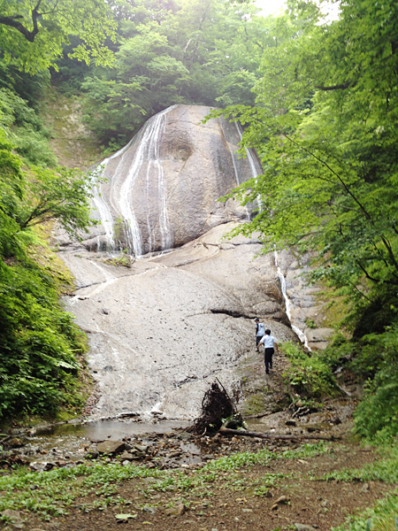 なぜスヌーピーなのかは、その姿を見れば一目瞭然。「みろくの滝」と言いながら、絶対に弥勒には見えません。誰が見たって巨大なスヌーピーです。ちなみに白く細く流れる水の姿から「そうめんの滝」の異名もあるとか。