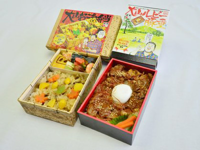 まんが王国とっとりでは、他にもマンガにちなんだオリジナルグルメが続々と登場しています。例えば、この夏販売開始された「大山(だいせん)ルビー豚重」と「大山(だいせん)おこわ弁当」は、「駅弁ひとり旅」とのコラボにより完成したものです。「駅弁ひとり旅」とは、フォトジャーナリストの櫻井寛(さくらいかん)先生作、はやせ淳先生・画の、「漫画アクション」(双葉社)で好評連載されていたあの人気漫画です。コラボ弁当の外見にははやせ先生のイラストが描かれ、櫻井先生にお弁当の中身の監修をいただいたそうです。これまでに他にも「駅弁ひとり旅」とのコラボ弁当が発表されているようですが、鳥取の魅力的な食材が詰め込まれたこのお弁当は、きっとその中でも完成度が高いはず!あくまで私個人の意見ですが…。このコラボ弁当、「大山ルビー豚重」はJR鳥取駅、「大山おこわ弁当」はJR米子駅の各売店で販売されています。また、京都・大阪⇔鳥取間を走る特急スーパーはくとの車内販売でも購入できるので、ぜひ。