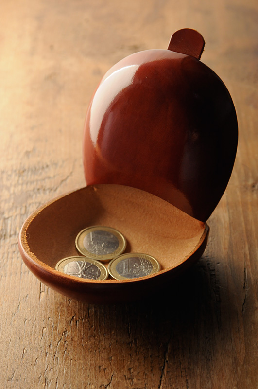 完成後は縫い目も接着跡も一切見えない、まさに職人芸と呼ぶにふさわしい高等技術を駆使ししてポルタモネータを作るのだ。珠玉という言葉があるが、コートのポケットに入れたこのポルタモネータをなぜていると、まさに掌中に玉を抱いているかのような感覚にとらわれる。それはダ・ヴィンチがとなえ、ルネサンス以来理屈でなく、感覚的に人間工学に基づいたデザインを作り出すイタリアの職人だからこそなせるわざ。無造作にポケットから取り出したポルタモネータがそっとテーブルやカウンターに置かれる時、周囲の空気まで一瞬変えてしまうような気になるのは決して大げさではない。