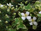 クレマチスモンタナは枝が枯れたように見えるのですが、枯れていると思いこの枝を傷つけると花芽をなくしてしまいます、大切に伸ばしておきます。春にはこの枯れた様な枝から若い枝と花芽が一緒に出てきて、ワンシーズンで1mぐらいは成長するのです。毎年このクレマチスモンタナは50以上の白い4弁の花を咲かせます、木香薔薇と花の時期が同じなので隣との生垣は花で満開になります。