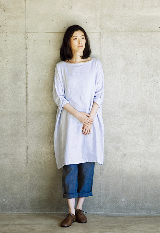 「もともとリネンが大好きで、公私ともにフォグリネンワークさんとは仲良くしていました。昨年の秋、ニューヨークで行われる雑貨の展示会用の新しいお洋服をデザインしてほしいというお話をいただきました。ソーイングの仕事は雑誌や本で発表していたのですが、商品として販売する洋服をデザインするのはこれがはじめてだったんです。フォグリネンワークの通常のラインをデザインする関根さんとアメリカ向けLサイズだけの展開を考えました」。