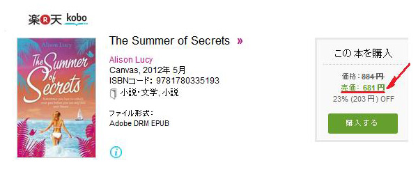 次に、同じ電子書籍が、楽天の書店でどれくらいの価格で売られているかを以下に示す。参考までに為替レートは、おおよそ1£(ポンド)=120円である。